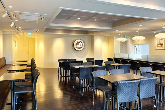 広々快適な店内テーブル席とカウンター席。